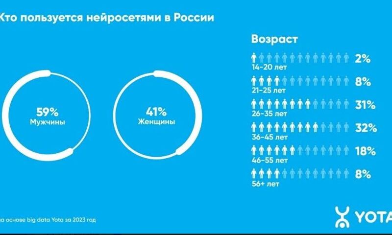 В России резко возрос интерес к нейросетям: за год мобильный трафик сервисов по работе с ИИ вырос втрое, их аудитория увеличилась в 3,5 раза. Об этом свидетельствуют результаты исследования, проведенного экспертами Yota на основе big data за 2022 и 2023 годы.