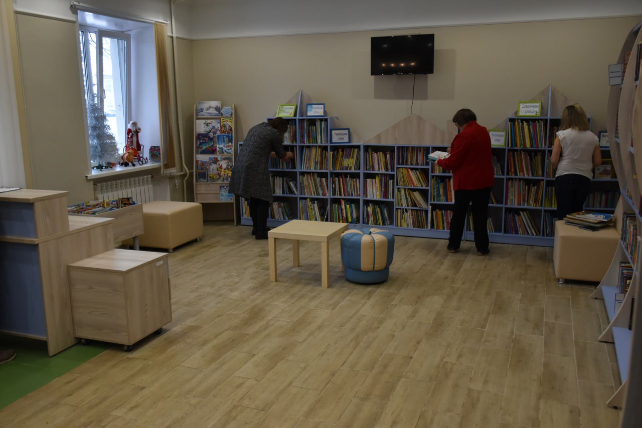 Подрядная организация сделала реконструкцию внутреннего пространства, обновила стены, полы и потолки, заменила книжные стеллажи, установила новую мебель. Пополнен и библиотечный фонд.