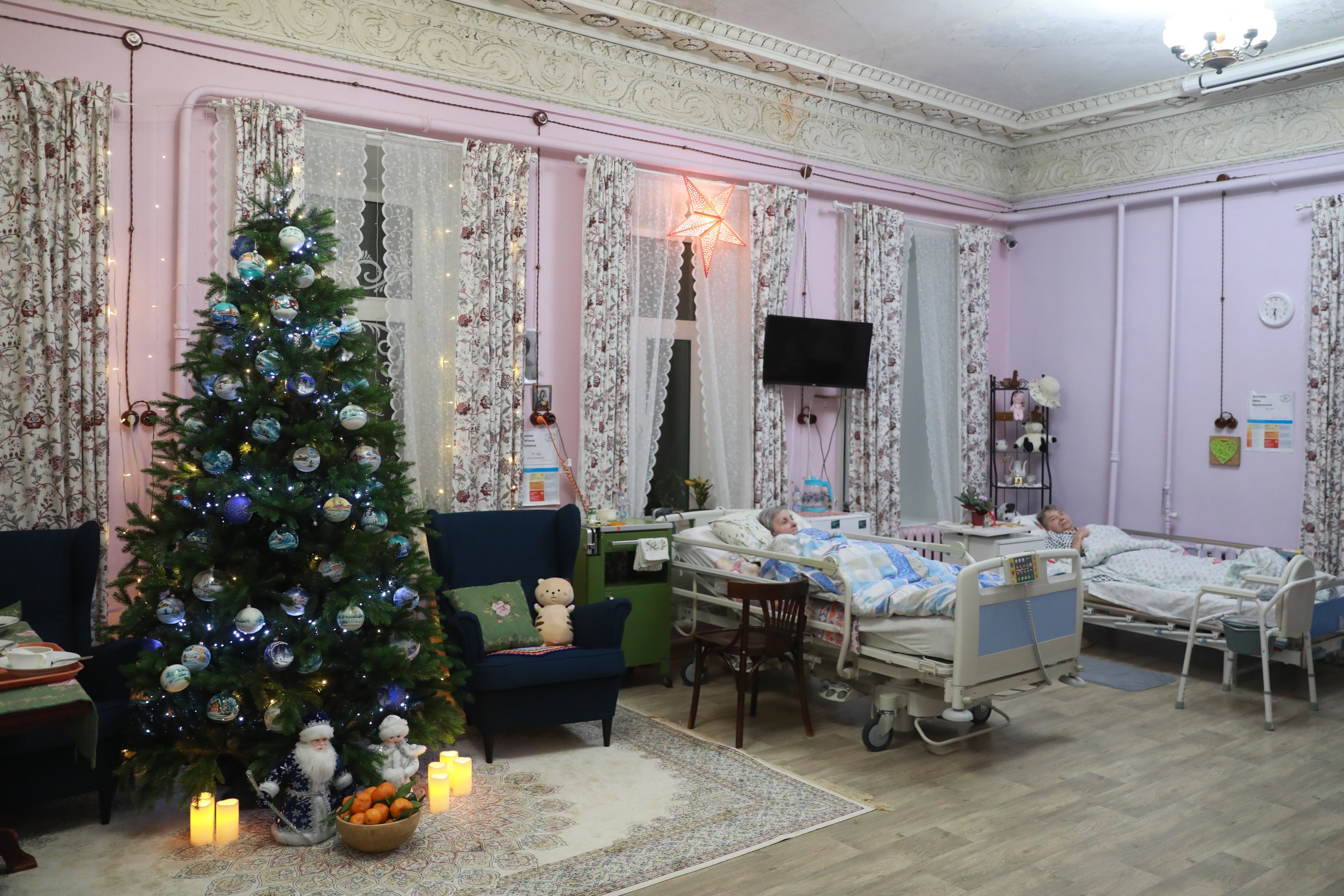 Михаил Евраев побеседовал с учредителем благотворительного фонда помощи хосписам «Вера» Нютой Федермессер, пообщался с постояльцами, поздравил всех с наступающими праздниками.