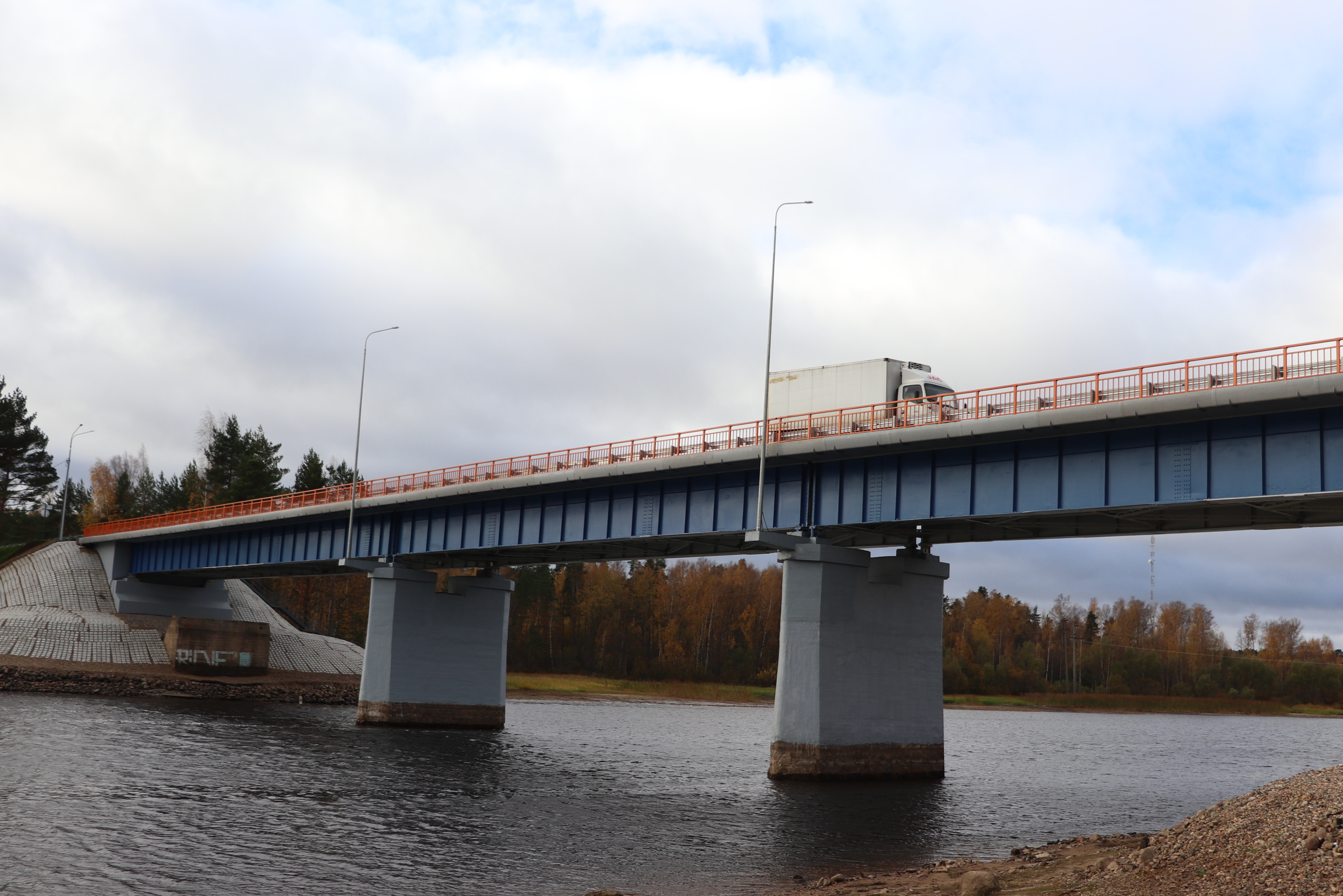 Подрядчик отремонтировал береговые и промежуточные опоры на мосту, заменил пролеты, технологические проходы, сделал линии освещения, уложил новый асфальт и выполнил обустройство проезжей части.