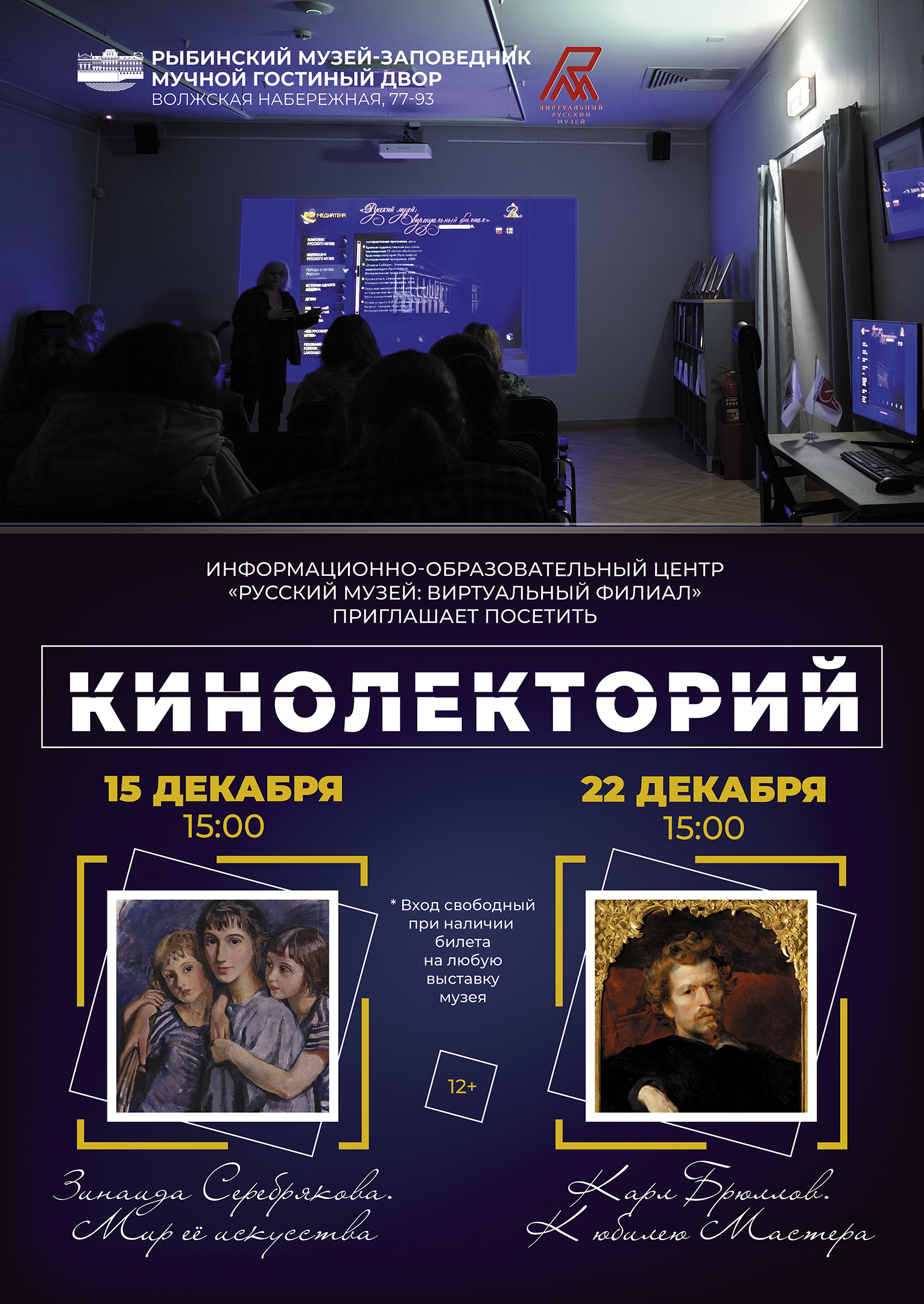 Информационно-образовательный центр «Русский музей: виртуальный филиал» приглашает жителей и гостей Рыбинска посетить мультимедийный КИНОЛЕКТОРИЙ в Мучном гостином дворе.