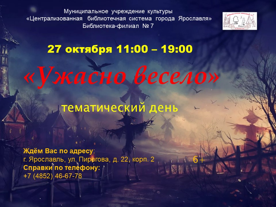 27 октября с 11:00 до 19:00 в библиотеке-филиале № 7 пройдет тематический день «Ужасно весело».