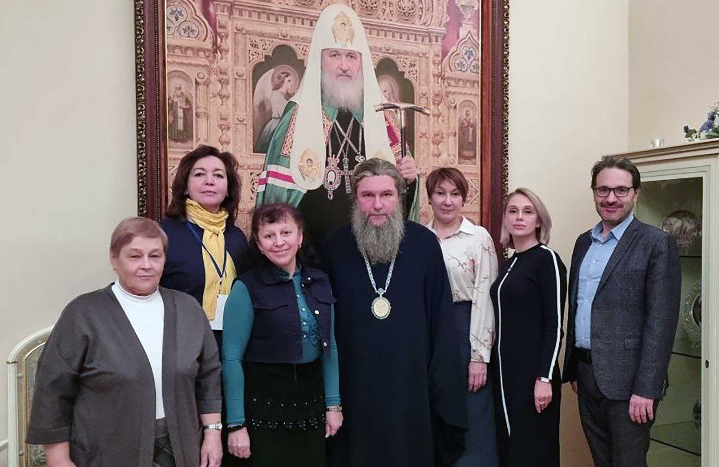 На встрече обсуждались вопросы сотрудничества Синодального отдела и институтов развития образования по программам повышения квалификации для учителей предметных областей «Основы религиозных культур и светской этики» и «Основы духовно-нравственной культуры народов России» с помощью образовательной платформы «Клевер лаборатория».