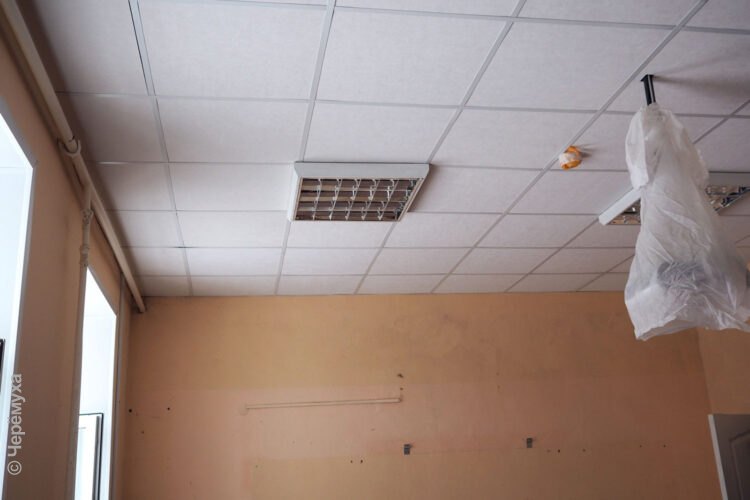 Потолок в классе восстановили за пару дней — уже сейчас в этом помещении осталось лишь прибраться и расставить парты привычными рядами.