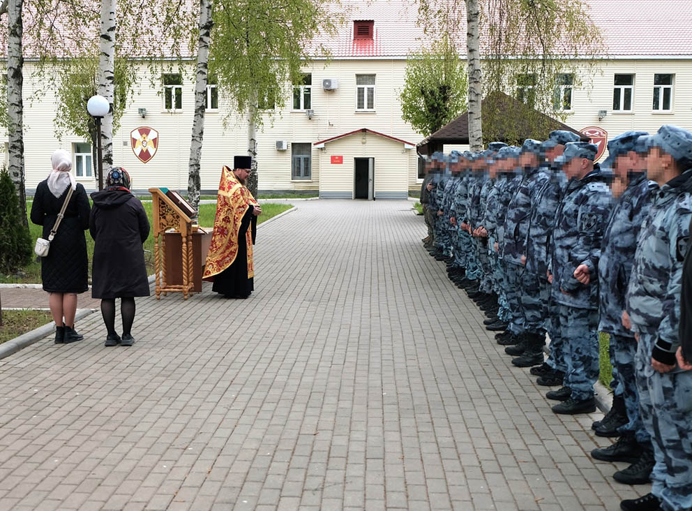 Молебен был совершен у часовни в честь Георгия Победоносца, построенной на территории базы специальных подразделений регионального управления Росгвардии.