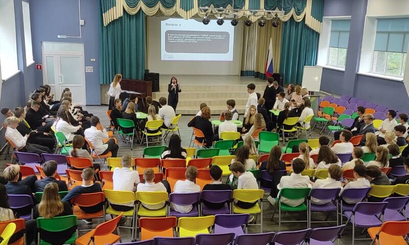 Так в ярославской школе №18 сегодня в рамках курса «Моя Россия — новые горизонты» организовали квиз, тестирование, беседы и другие профориентационные активности.