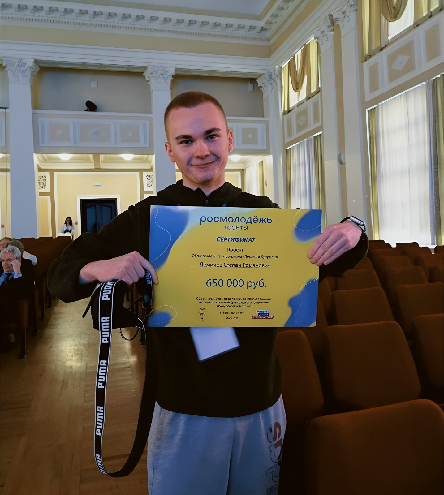 Стали известны итоги грантового конкурса Росмолодёжь.Гранты, в котором победу одержал студент 3 курса ЯГПУ им. К.Д. Ушинского Степан Демичев. Степан выиграл 650 тысяч рублей на реализацию образовательной программы «Педагоги будущего».