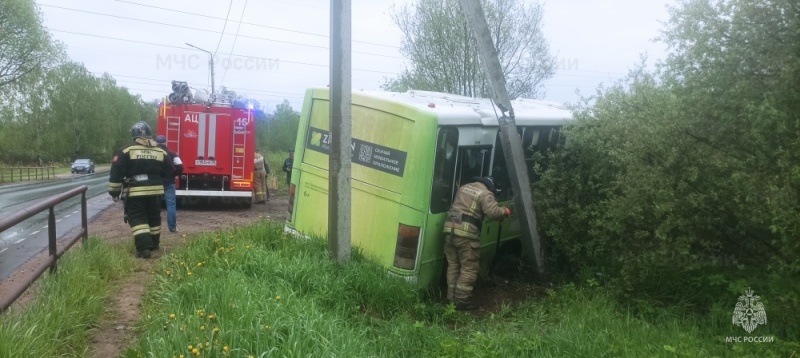 ДТП произошло в 10-м часу утра в воскресенье, 21 мая, у деревни Макарово Рыбинского района Ярославской области. 43-летний водитель рейсового автобуса ПАЗ не справился с управлением, врезался сначала в ограждение, а потом - в световую опору.