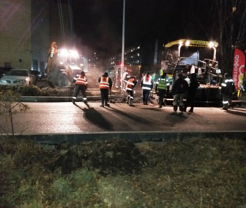 10 ноября вечером на улице Саукова в г. Ярославле начали укладку верхнего слоя асфальтового покрытия.