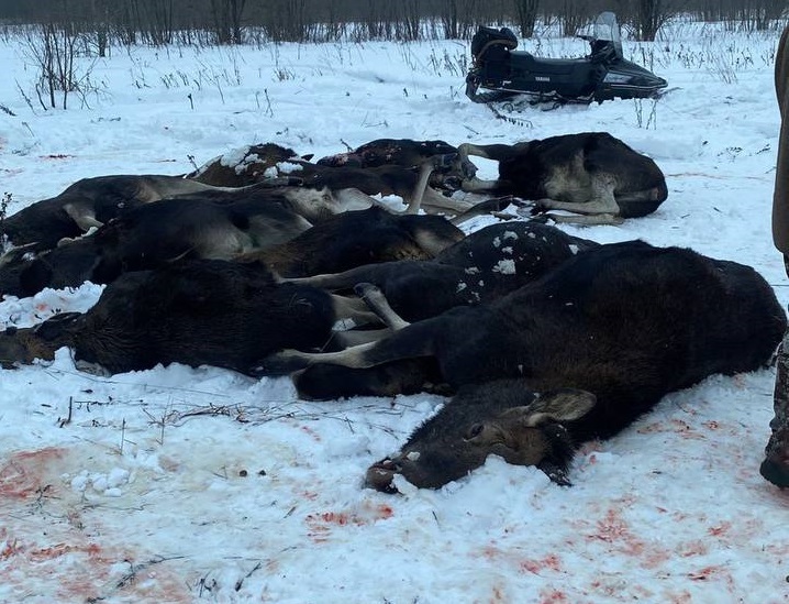 В Ярославской области не утихают страсти вокруг расстрела московскими охотниками 20 лосей. Вопиющий случай произошел 23 декабря 2022 года в Тутаевском районе. После публикации фото расстрелянных лосей, среди которых якобы были беременные самки, скандал вышел на российский уровень. Сегодня он обрел неожиданное развитие. По данным проверки, проведенной природоохранной прокуратурой, чиновники департамента охраны окружающей среды и природопользования регионального правительства существенно занизили ущерб, причиненный участниками лосиной бойни.