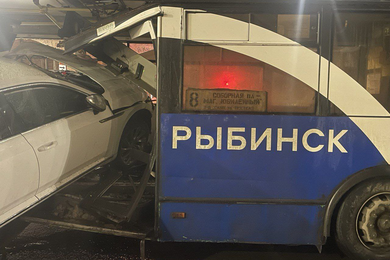 Как сообщает инсайдер 76.RU, у водителя белого «Фольксвагена», который влетел с автобус, перелом позвоночника. Машиной управляла местная жительница — 31-летняя Надежда.