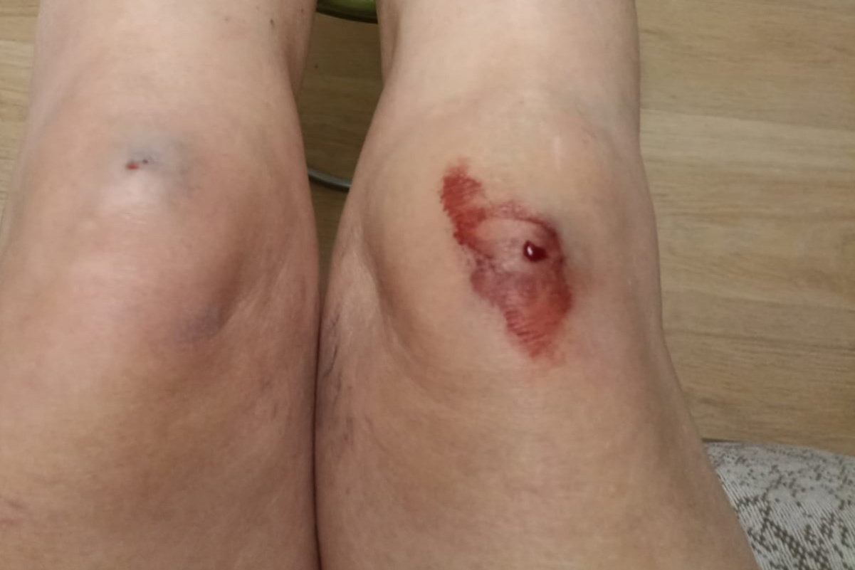 Пенсионерке помогла подняться проходившая мимо женщина с ребенком. По словам Натальи, удар об асфальт пришелся и по лицу.