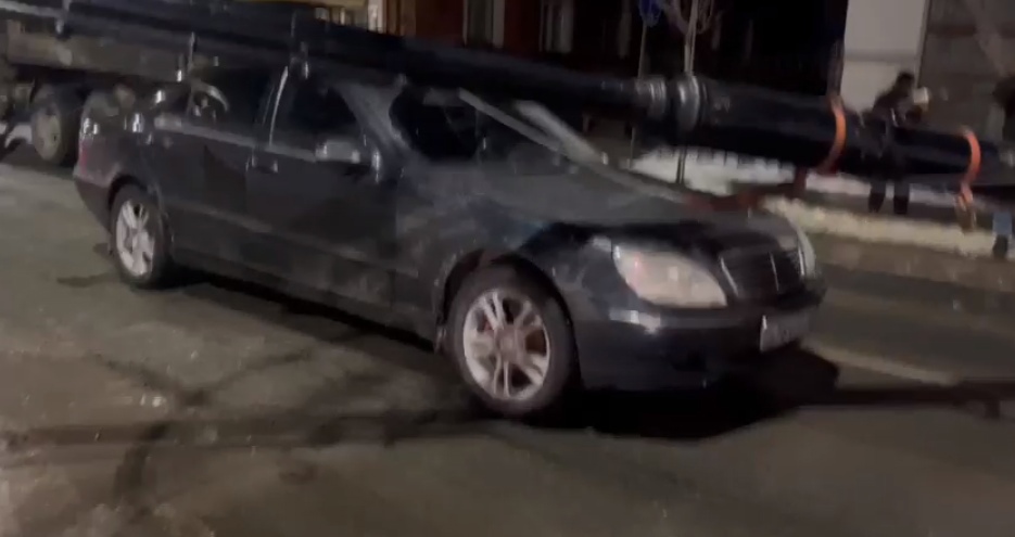 В центре Рыбинска на автомобиль упал фонарный столб