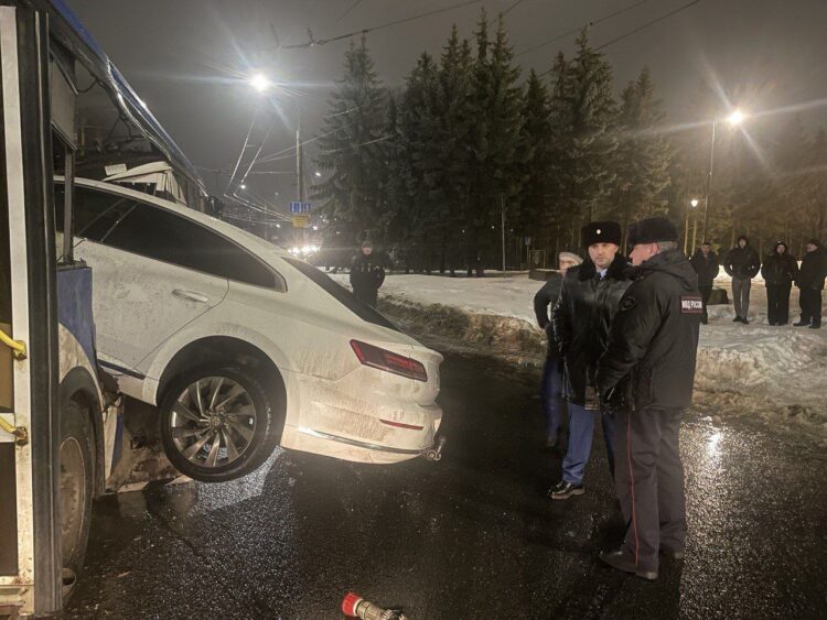 В субботу, 23-го декабря, около девяти вечера на круговом перекрёстке у Соборной площади автомобиль Volkswagen Arteon врезался в пассажирский автобус, следовавший по маршруту №8.