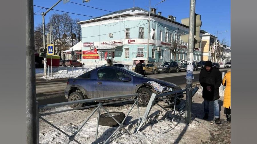 Сегодня утром в центре Переславля произошла авария с участием двух автомобилей. В результате один из них проломил ограждение и едва не вылетел на тротуар в районе пешеходного перехода. В УМВД России по Ярославской области корреспондентам "Вести. Ярославль" сообщили, что участниками ДТП стали автомобили "Опель" и "КИА".