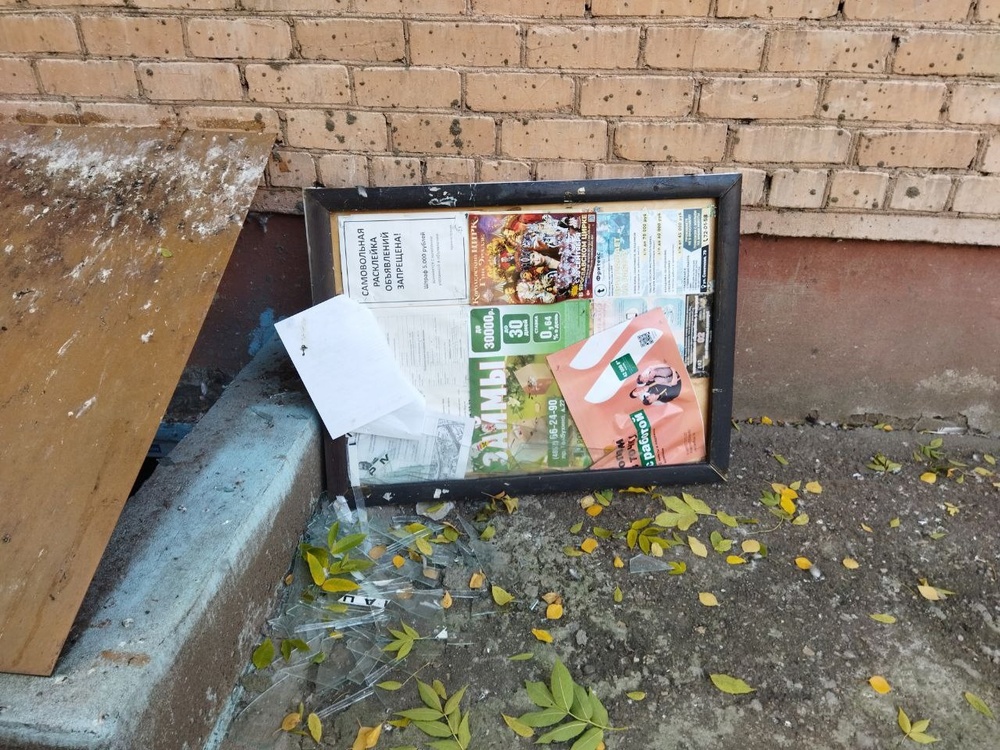 В ночь с субботы на воскресенье около дома №51 по проспекту Ленина неизвестные разнесли стеклянные доски объявлений у нескольких подъездов. По словам жителей, вандалам было не более 15 лет – отчетливо слышно было два писклявых голоса парнишек и один голос девчушки.