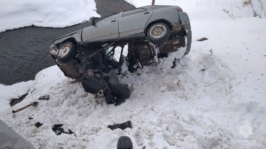 Вчера, 4 марта, в Угличском районе произошло ДТП. Автомобиль «ВАЗ-2124» врезался в металлическое ограждение моста и опрокинулся через него.