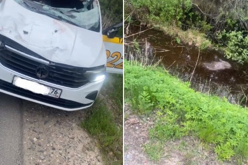 Около восьми вечера 19 мая в Рыбинском районе Ярославской области произошло жесткое ДТП с лосем. На дороге между деревней Мархачево и селом Глебовское автомобиль такси «Фольксваген Поло» сбил животное.