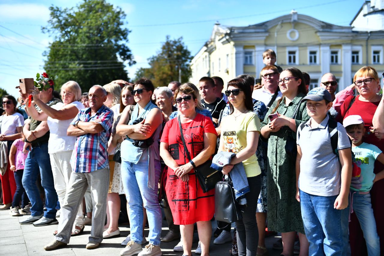 Торжественное мероприятие началось с выноса Государственного флага Российской Федерации и Боевого знамени воинской части под аккомпанемент военного оркестра. После мэр Ярославля Артём Молчанов, представители военного комиссариата Заволжского района и командования войсковой части поздравили молодое поколение бойцов с торжественным событием в их жизни.