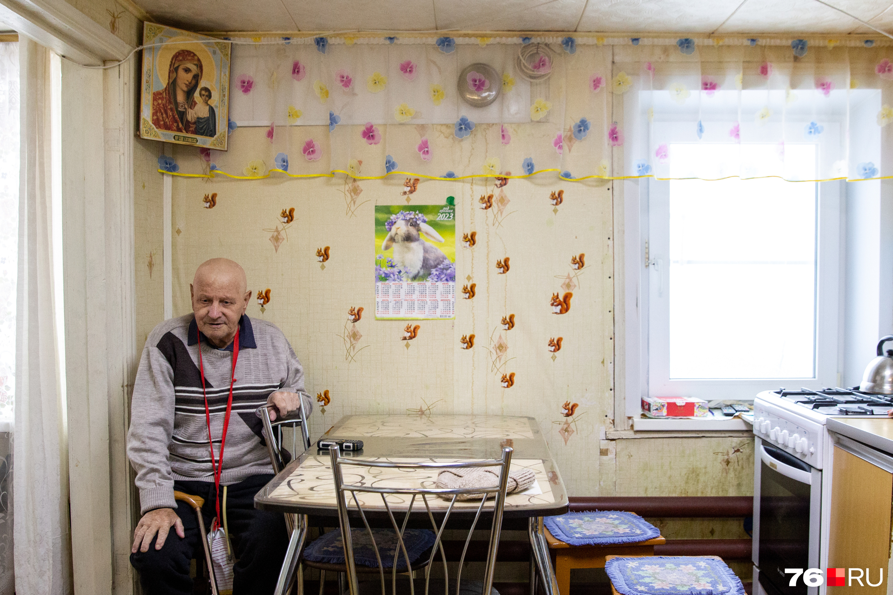 На пороге его деревянного домишки в Ростовском районе нас встретил пушистый рыжий кот. В сенях уже ждала супруга пенсионера Людмила. Улыбчивая, суетная хозяйка пригласила войти, попутно раздавала маски, предлагала чай и беспрерывно болтала о насущном.