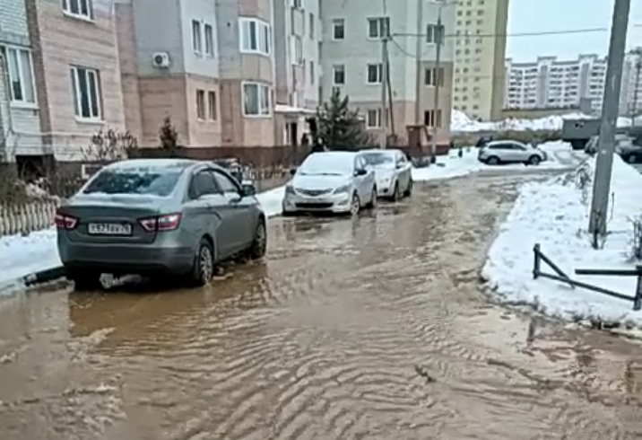 О ЧП сообщили местные жители, заснявшие разлив «реки» на камеру. Похоже, что проблема серьёзная — дорога во дворе оказалась затоплена полностью, расположенные чуть выше тротуары водой не затронуло.
