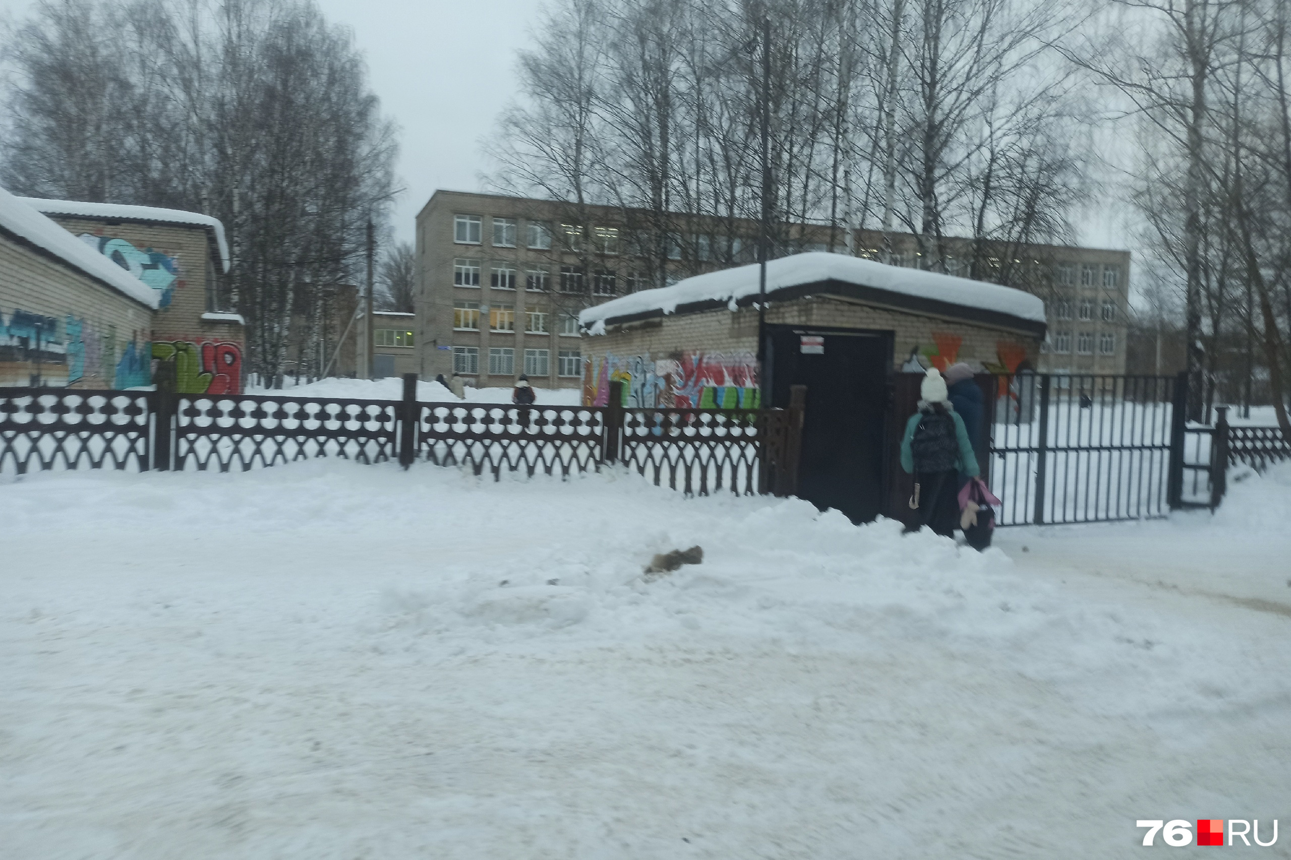 На фото видно, что забор у школы действительно низкий. А сейчас, зимой, из-за гигантского слоя снега, сваленного около ограждения, его и вовсе можно перешагнуть.