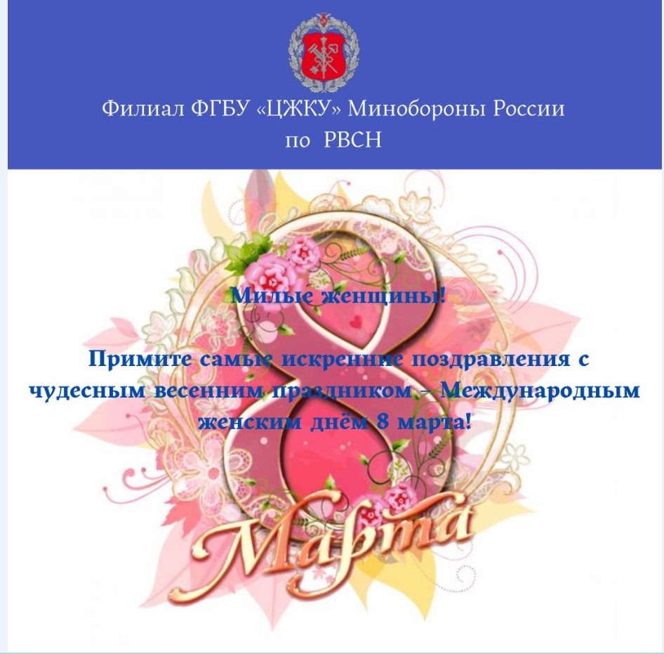 Филиал ФГБУ «ЦЖКУ» Минобороны России по РВСН поздравляет с 8 Марта