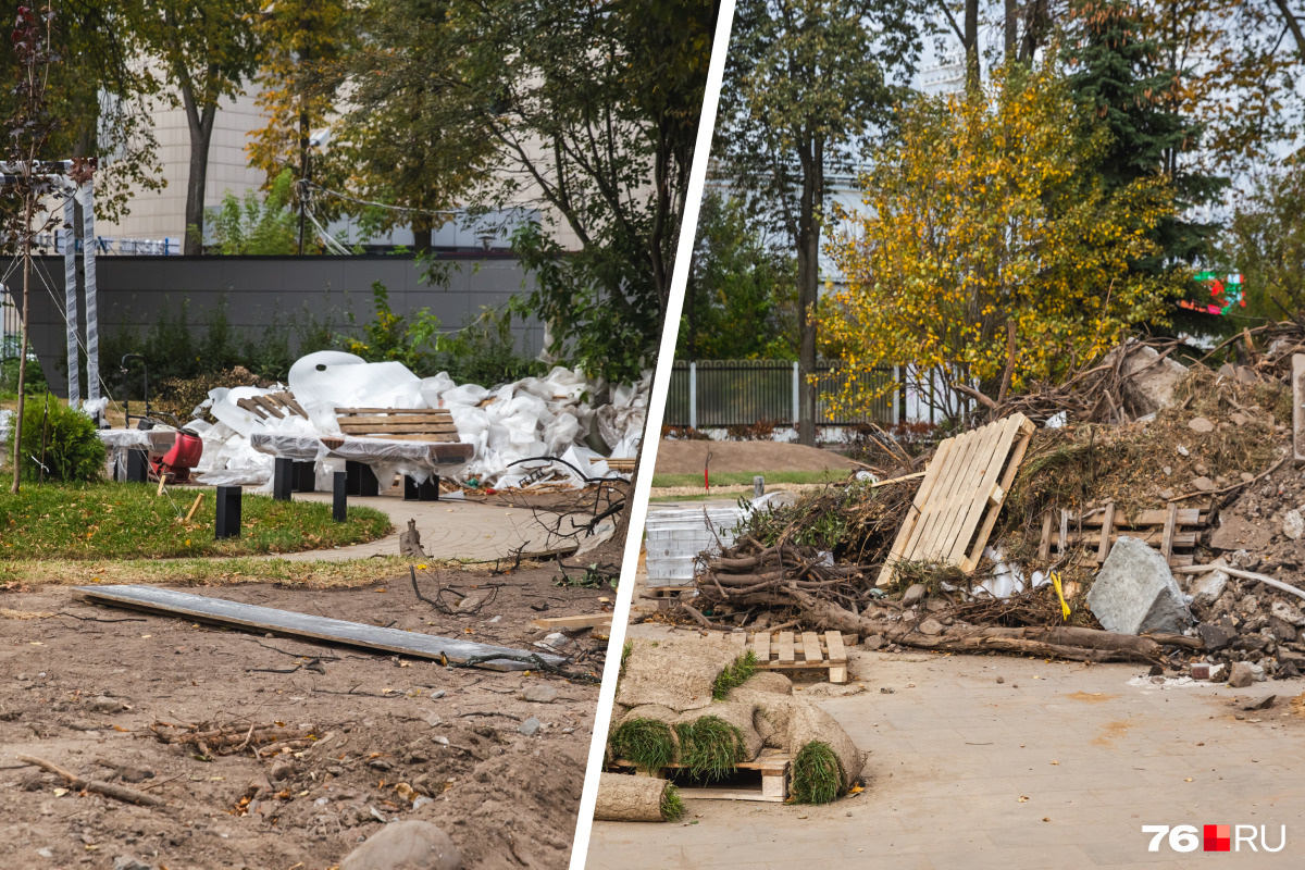 Горы мусора и грязь: как выглядят скверы в центре Ярославля, которые обещают доделать к 25 сентября
