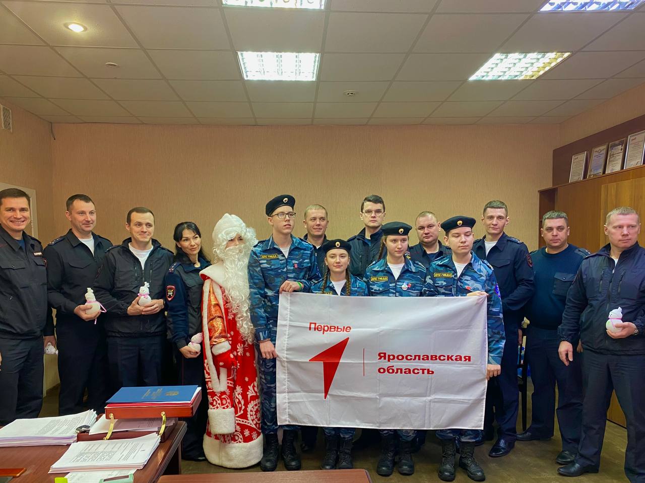 Сегодня участники объединения «Движения первых» посетили Центр дорожного и технического надзора и пропаганды безопасности дорожного движения ГИБДД УМВД России по Ярославской области, чтобы поздравить специалистов профессии в канун Нового года.
