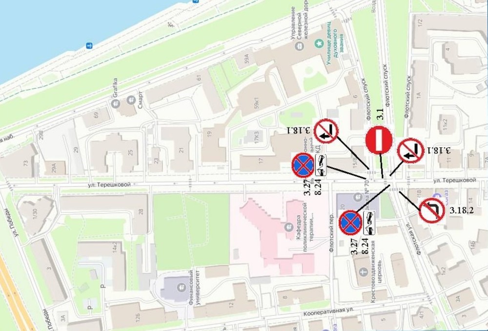 Так в районе того же перекрестка с Флотской у водителей не получится не свернуть с улицы Терешковой — действует запрет на повороты. Наконец, у Флотского спуска появится «кирпич». «Ограничение вводится в целях увеличения пропускной способности и в связи с проведением ремонтных работ. Просим Вас быть внимательными и соблюдать требования Правил дорожного движения РФ»,— отметили в мэрии Ярославля.
