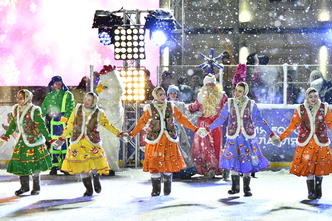 Для ярославцев с новогодним шоу выступили конькобежцы, хоккеисты и фигуристы. Программа сопровождалась творческими выступлениями, световыми эффектами, а также ярким фейерверком.
