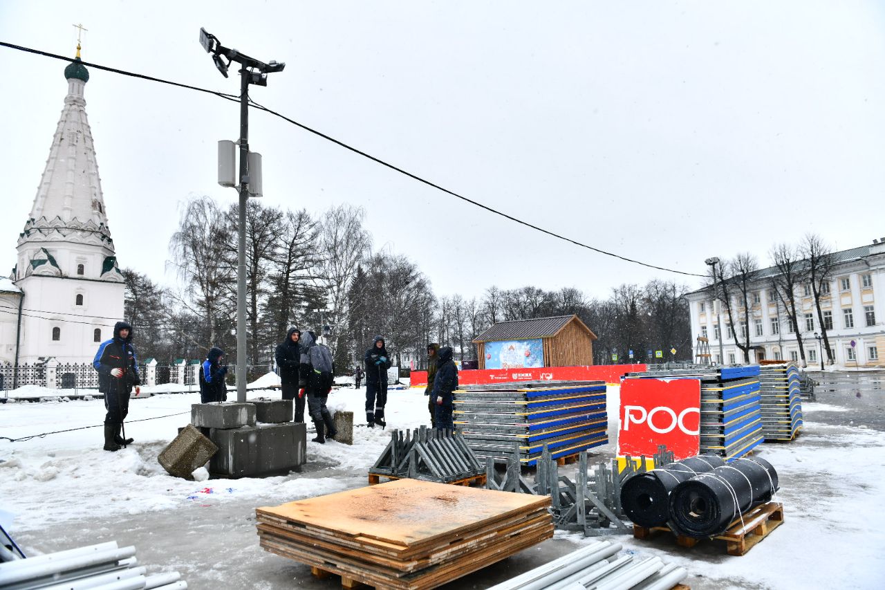 Каток был открыт для всех желающих с 28 декабря 2022 года. Сегодня на Советской площади завершаются работы по демонтажу ледового катка. Рабочие уже разобрали коллекторную систему и убрали айс-маты.