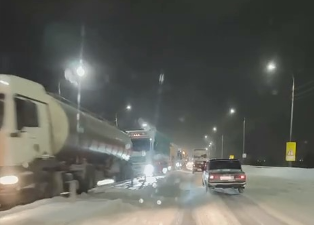 «Окружная в сторону Нефтестроя вся стоит. У фур даже двигатели заглушены. Кто курит, кто в моторе ковыряется, кто в носу. Короче, не едут. В сторону Брагино тоже проезд затруднен местами»,— рассказывает водитель.