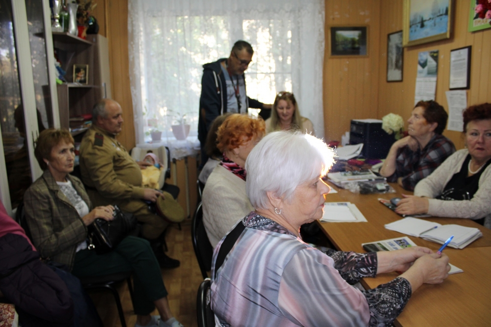 В ветеранский центр прибыли представители военно-патриотического клуба имени М. И. Кошкина, Татьяна Ивановна Кибкало и Николай Егорович Морозов, возглавляющие Центр живой истории (Переславское отделение «Китежград»). Они рассказали много интересного и значимого в патриотическом воспитании молодого поколения. Произвели демонстрацию кадров хроники советских исторических фильмов и показали фотоматериалы из проводимых ими реконструкций советского образа жизни с воплощением стиля и моды в одежде того периода: форму одежды военного Советских Вооруженных Сил с наглядной демонстрацией, на примере одного из участников клуба, с орденами и медалями (специально изготовленными муляжами) участника боевых сражений в Великой Отечественной войне. Продемонстрировали быт и культуру Советского народа в того времени, на примерах собственного перевоплощения, рассказали о нравах и воспитательных процессах того общества. Был приведен пример реконструкции боевых действий в «доме Павлова» в нашем городе.