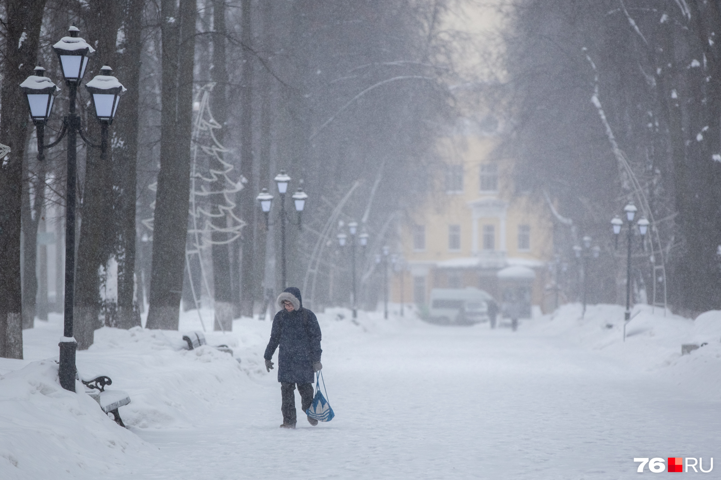 15 февраля Ярославль накрыла метель, мелкие крупицы снега завалили город, оставив следы повсюду. Автомобилистов после работы встречали заваленные снегом машины, ожидаемо к вечеру город сковали девятибалльные пробки . Фотограф 76.RU прогулялся по снежному городу. Показываем морозные кадры.