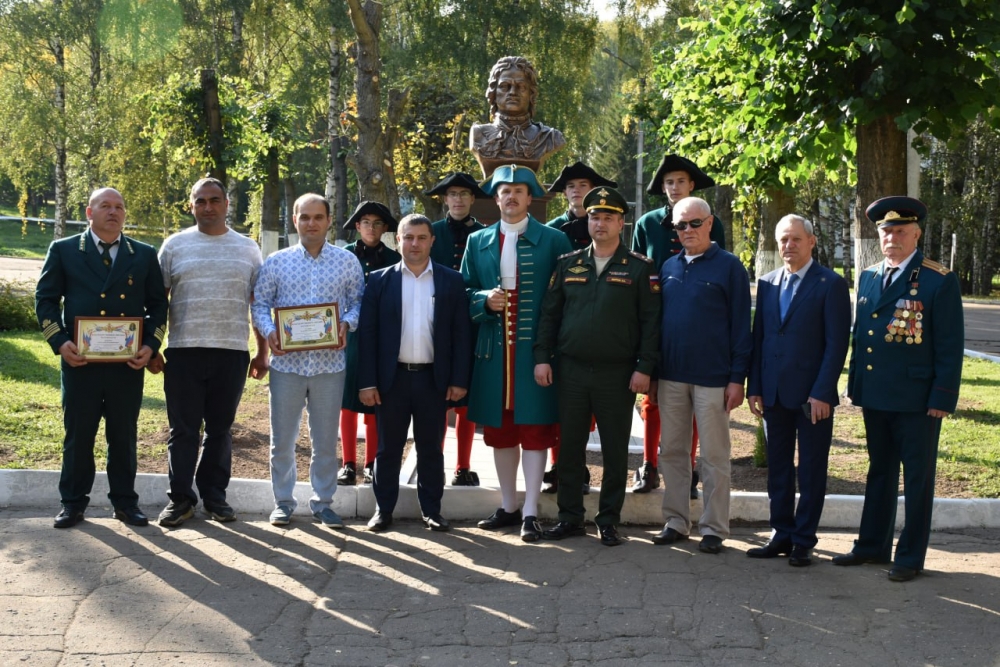 Бюст предоставлен воинской части в дар от автора проекта «Аллея Российской Славы» Михаила Леонидовича Сердюкова. Надпись на постаменте гласит: «Великий реформатор и полководец, превративший Россию в крупную и сильную европейскую державу». Это уже не первый памятник, установленный на территории учебного центра. Он станет еще одним элементом военно-патриотического воспитания молодежи и увековечивания памяти великих людей.
