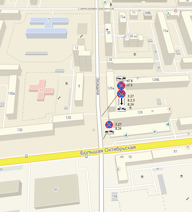 В целях обеспечения необходимого уровня безопасности дорожного движения и пропускной способности на участке улицы Лисицына в районе домов № 126 и № 126а по ул. Большая Октябрьская с 1 октября 2024 года вводится ограничение остановки и стоянки транспортных средств.