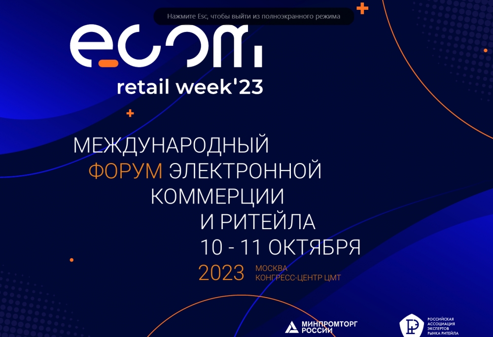 С 10 по 11 октября 2023 года в Москве в Центре Международной Торговли пройдет международный форум ECOM Retail Week , который соберет ведущих экспертов электронной торговли и ритейла. Организаторы форума - Министерство промышленности и торговли Российской Федерации и Российская Ассоциация экспертов рынка ритейла.