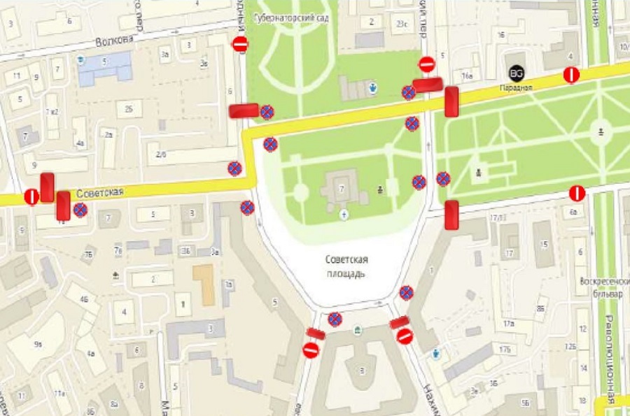 Как сообщает мэрия города, в субботу, 26 августа, с 6 часов утра и до 17 часов будет ограничено движение транспорта на участках улиц Советская, Народный переулок, Советский переулок, площадь Челюскинцев, Советская площадь, Нахимсона, Кирова. А с 19 часов 25 августа до 17 часов следующего дня вводится временное ограничение стоянки и остановки транспортных средств на участках улицы Советская, Советская площадь.