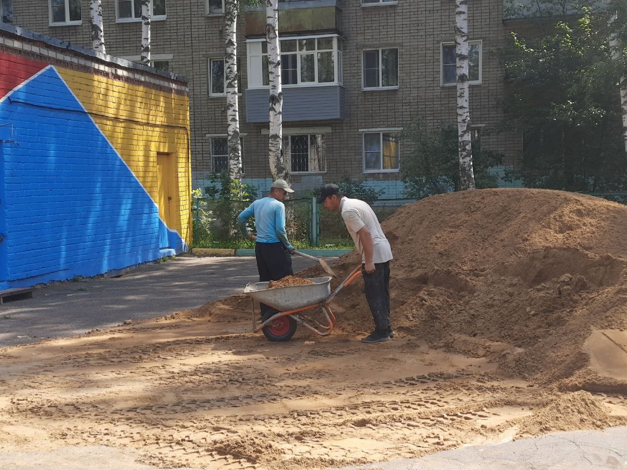 — Существующее основание детских площадок достаточно травмоопасно, оно сильно повреждено корнями деревьев. Перед нами поставлена задача привести поверхности площадок в полный порядок. Сейчас мы с помощью специального инертного материала производим выравнивание площадок. После того, как мы произведём утрамбовку покрытия, оно будет ощущаться, как мягкий песок под ногами. Используемый материал не оставляет грязи и пыли. Эти работы мы планируем завершить в течение 5-7 дней, — рассказал представитель подрядной организации Михаил Завьялов.