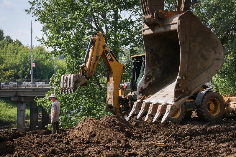 Береговая линия спланирована для дальнейшего строительства. По нижнему ярусу берега – от разрушенного старого моста до моста через Черемуху будет сформирована пешеходная зона для прогулок, спуски к воде для рыбаков.