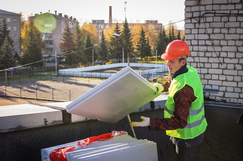 Подрядной организации предстоит выполнить демонтаж старого парапета, укладку теплоизоляционного материала, а затем - гидроизоляционного – ПВХ мембраны. Высокотехнологичный материал позволит выполнить ремонт в осенний период без потери качества.