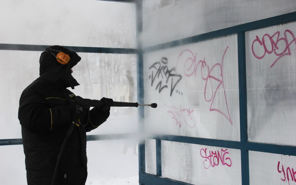 Оборудование, распыляющее горячую воду под высоким давлением, протестировали на улицах Ярославля: специалисты очищали столбы, фасады, заборы и остановки от граффити.
