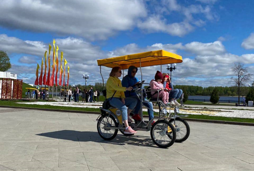 «К майским праздникам в Ярославле начал работать прокат велокарет. Арендовать их можно на набережной и Стрелке. Это новый вид услуг для города. Сервис также позволяет построить туристические маршруты с аудиогидом»,— заявил Артем Молчанов.