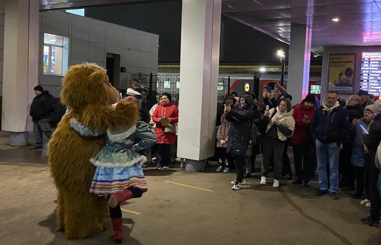 На перроне гостей встретили сотрудники учреждений культуры города в костюмах героев сказочных персонажей, одним из которых был Медведь – символ Ярославля. Он приветствовал участников тура.