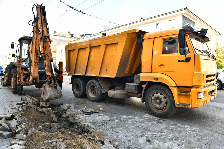 Подрядная организация ООО «Восток Запад Транзит» уже ведет демонтаж старой плитки на улице Ушинского, также ведется фрезерование старого асфальта на той же Ушинского и Красной площади. Ремонт в мэрии собираются закончить в октябре.