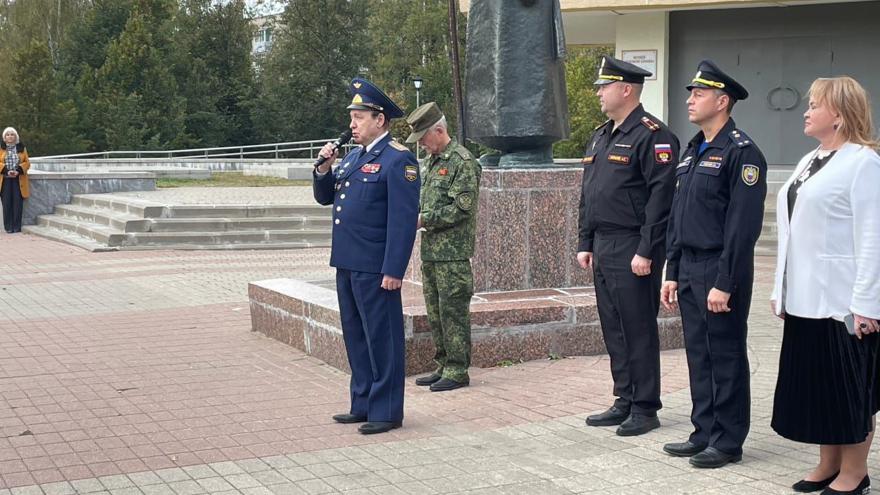 Школьники дали клятву верности кадетскому братству, а затем прошли торжественным маршем по площади у Музея боевой славы.