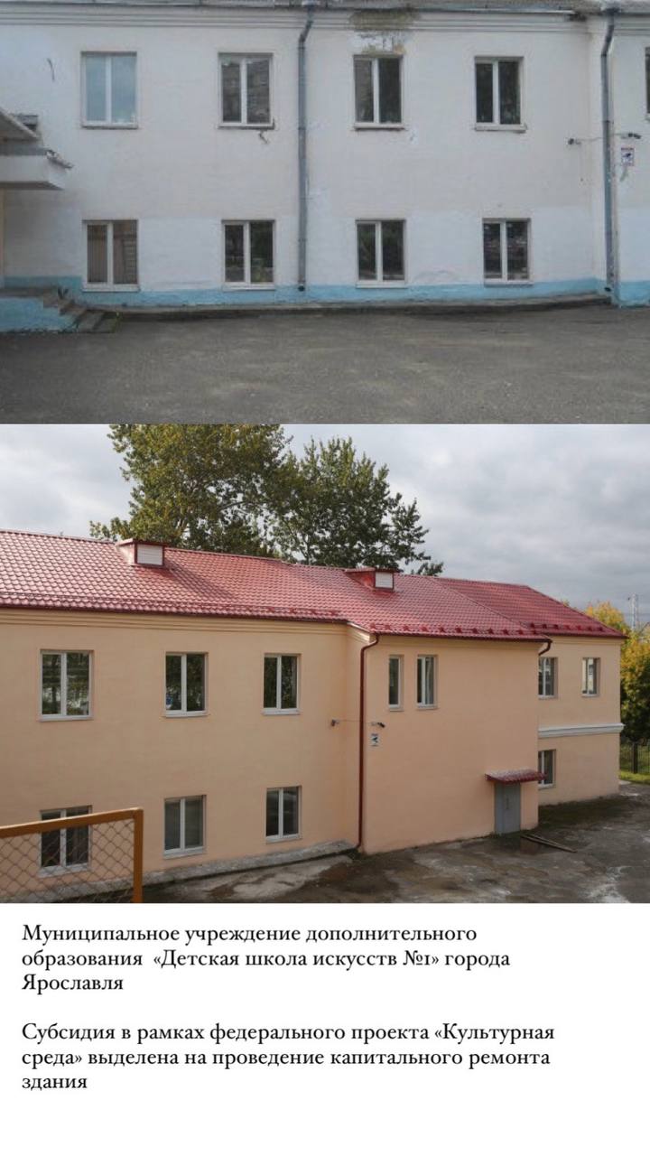 В 2021 году в рамках федерального проекта «Культурная среда» состоялось обеспечение трех детских школ искусств — №3, №5 и детской школы искусств имени Л.В. Собинова — необходимыми инструментами, оборудованием и учебными пособиями. Новое оснащение позволило расширить возможности обучения и обогатить состав ансамблей редкими инструментами. Всего было приобретено 175 единиц музыкальных инструментов, 162 единицы оборудования и более 870 единиц учебных материалов. Кроме того, в рамках федерального проекта «Культурная среда» была выделена субсидия на проведение капитального ремонта здания детской школы искусств №1.