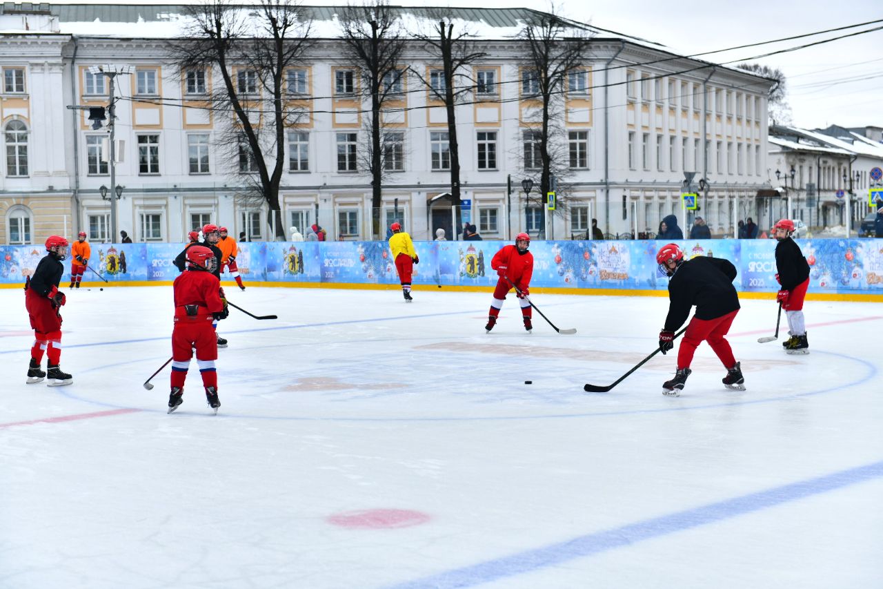 Сегодня на Советской площади прошёл мастер-класс по хоккею для всех желающих.