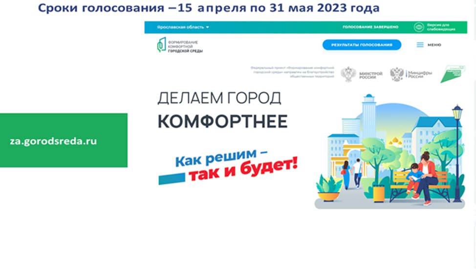С 15.04.2023 по 31.05.2023 будет проходить онлайн-голосование по выбору общественных территорий, благоустройство которых будет выполнено в городе Ярославле в 2024 году.